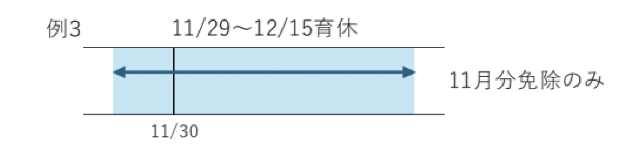 これはあくまでも、育児休業の開始日と終了日が同じ月にある場合を対象としています。育児休業の開始日が前月であり、終了日が属する月に14日以上の育児休業を取得していたとしても、育児休業の終了日が属する月の社会保険料は免除の対象になりません(例3参照)。