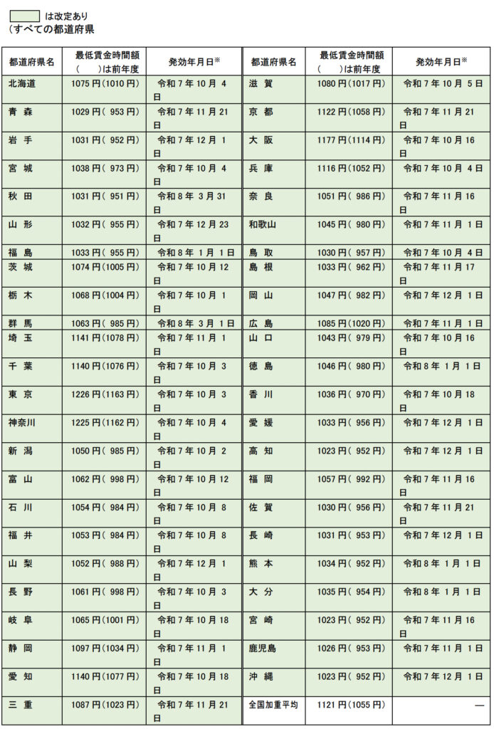 令和7年度の地域別最低賃金について、各地方最低賃金審議会での答申が出揃い、
